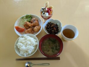 | 食事内容 | ごはん・味噌汁・唐揚げ・ひじき煮・バナナパフェ (メニューは変更になる可能性がございます) |